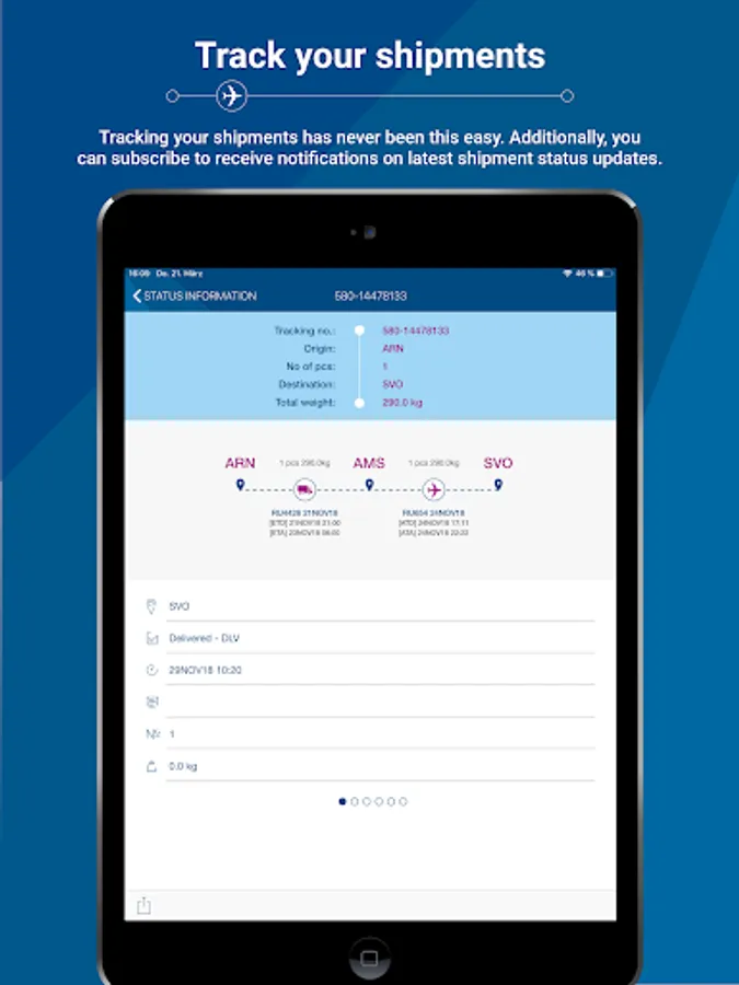 Conveniently look up status updates on your shipments – anywhere, anytime. Simply enter your AWB to receive the latest information.