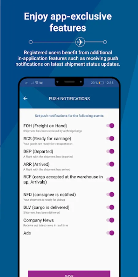 AirBridgeCargo App main features: