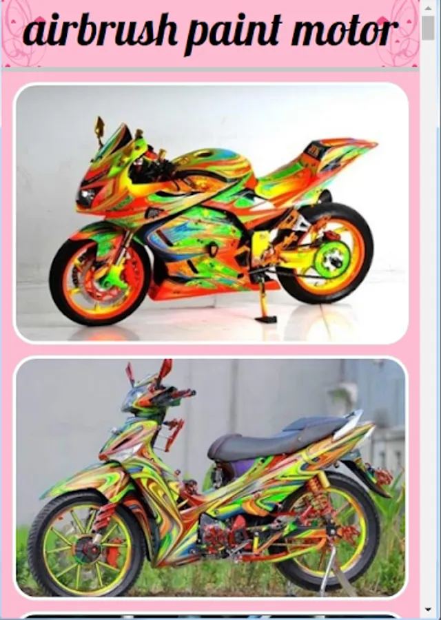 The airbrush display will beautify your motorbike. But not a little airbrush work that requires finished sketch drawings for motorbikes that require the hands of a reliable designer.