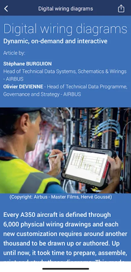 The articles are written by Airbus engineers, maintenance staff, pilots, instructors, upgrade services, etc. Its objective is to spread over the aviation community, airworthiness authorities, schools and universities, Airbus’ philosophy on technical, research & technology, maintenance and environmental matters, to name a few.