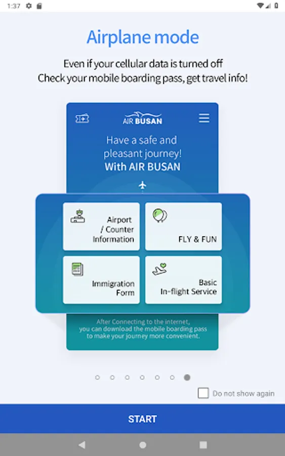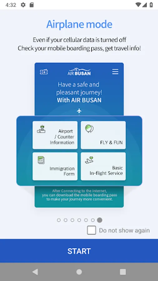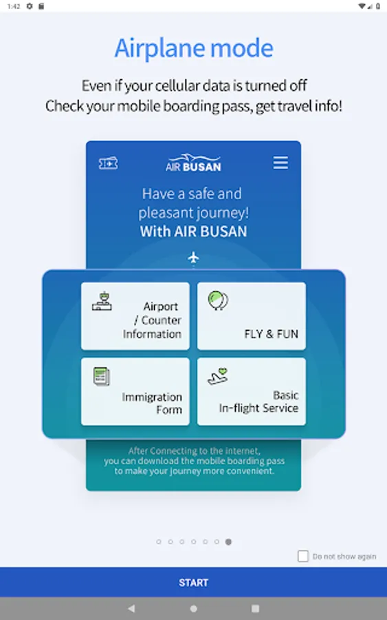 - Airplane mode contents: Mobile boarding pass / Airport & counter information, FLY&FUN, Immigration form, Basic in-flight service)