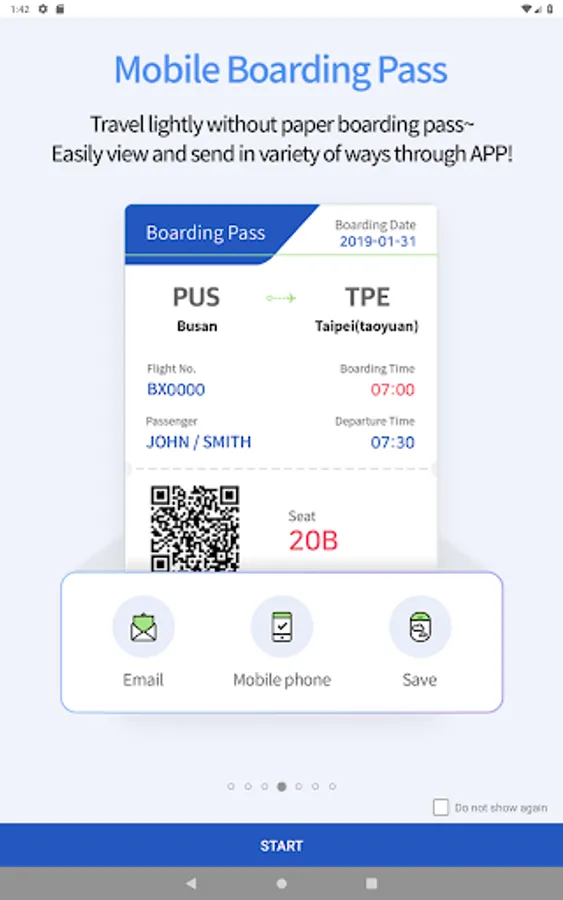 - Mobile boarding pass: Can save the boarding pass in application and airplane mode.