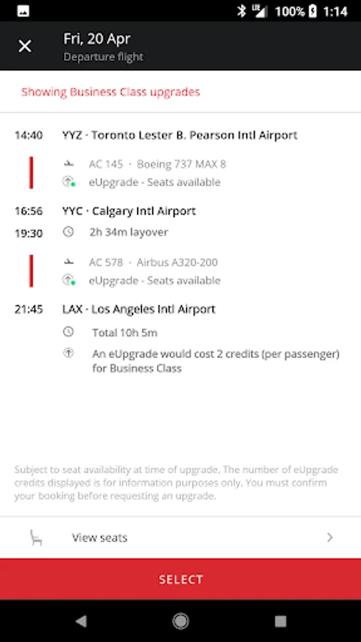 - Use your saved credit cards from Air Canada mobile+ for quick, and secure payment transactions.