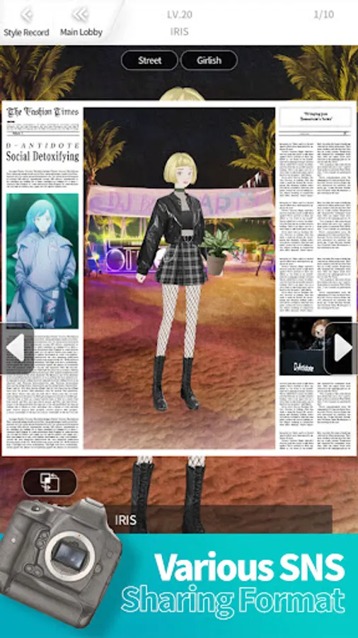 The main content of game is Story Journey. Take an exciting adventure with the GIRL GLOBE team. You will be able to collect various outfits by meeting representative designers from each country.