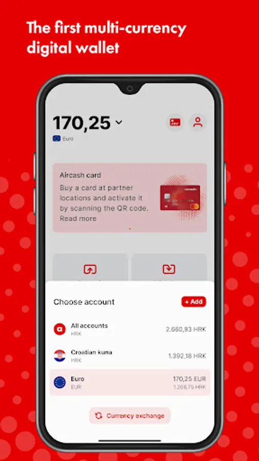 Money from the Wallet can be withdrawn instantly in cash at any PBZ ATM, on Aircash partner's point of sales at thousands of locations across Croatia as well as to any Croatian bank account.