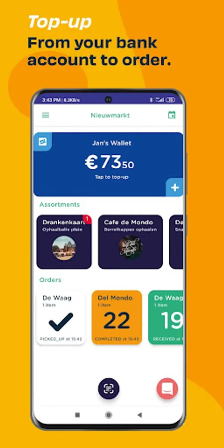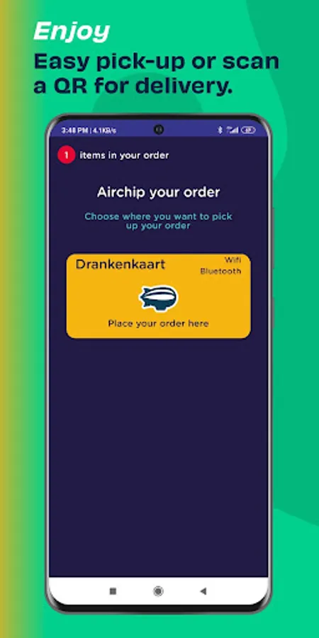 We believe that when you enjoy life, you don’t want to waste time standing in line. Using our app you can top up your balance and then order your products on the screen. Finally, you can ‘Airchip’ your order for easy pick-up, or get it delivered where you are.