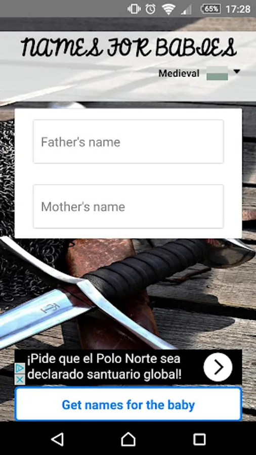 With this app it is very easy to find the best medieval name, just enter the name of the father and the name of the mother and automatically calculate the name that best fits. You will know which name is the ideal for your son or daughter.