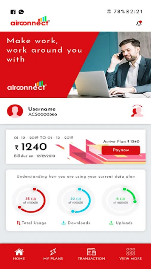 Airconnect app used for customer pay bill,view and update plan.App can be used only Airconnect customer using there Aiconnect ID and register mobile number.