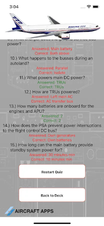 •Choose any aircraft system from a drop down menu and easily study technical questions about the airplane.