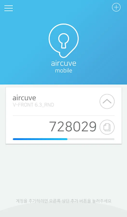 aircuve mobile's Ltd is a mobile application that generates OTP (One Time Password) for one-click response to the authentication request from the V-FRONT on the two-Factor authentication solution cube of air or certification.