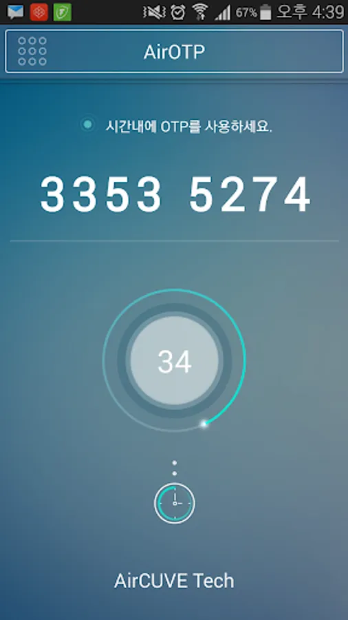 AirOTP is a mobile application that generates One Time Password (OTP) from AirCube's 2-Factor authentication solution V-FRONT.