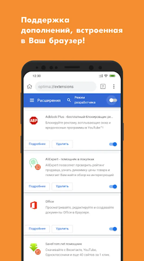 ★ Optima Browser is a fast, easy and secure Web browser that allows you to comfortably spend time on the Internet even with poor Wi-Fi connection. Thanks to the built-in AdBlock, the browser hides annoying ads and displays only the information that really matters to you. This browser is equipped with all the functions for comfortable listening to music, watching videos, as well as convenient spending time on social networks and on news sites.