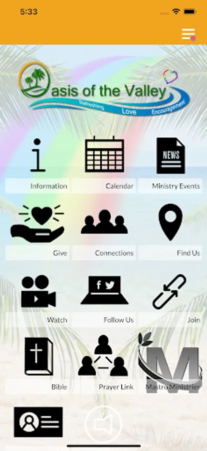 Oasis of the Valley is "God's Life-GIving wellspring of love and acceptance, where we encourage growth and connection!" Connection is a key to any relationship, and with the Oasis app, you can stay connected by having access to the calendar, send prayer requests to the prayer team, communicate with the pastor, view live-stream events, access our library of teaching, and much more. Having the Oasis App will also allow the pastors and ministry team to communicate with each member in an instant, about prayer requests, special gatherings, and pertinent information!