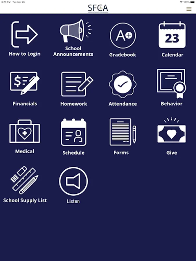 Welcome to the FACTS Family Custom App for Southwest Florida Christian Academy in Fort Myers, FL! This app is a one-stop-shop for our school community, with anytime, anywhere access to all the tools, content, and communications parents need to stay connected and engaged. School information available in one easy to access place includes Announcements, School Calendar, Student Grades and Homework, Family Accounting, Giving Options, and much more!