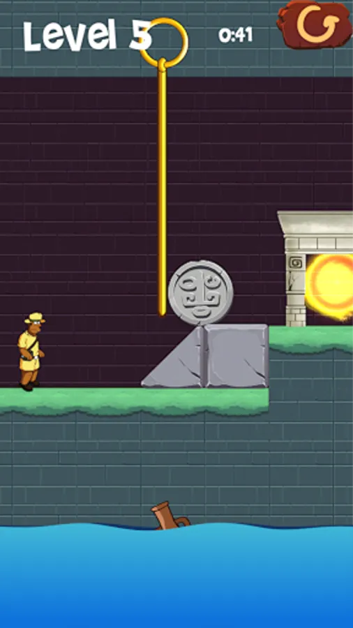 Draw the sticks, drag the stones, cut the rope in the right order. Should you do it wrong, do it again quickly to avoid time running out.