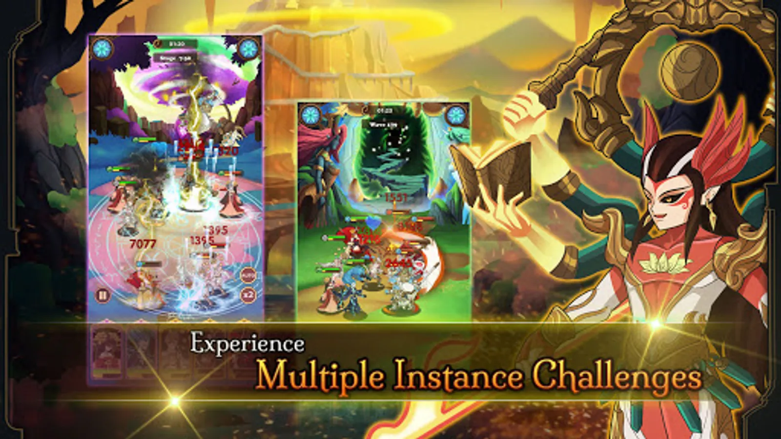 ● Different from AFK Arena games, Idle Heroes, join in Three Realms Chaos you can build your defensive strategy by gathering legendary heroes to defend your tower. Beat up all the opponents, monsters trying to attack your kingdom, bring your warriors to rescue the tower from invasion.