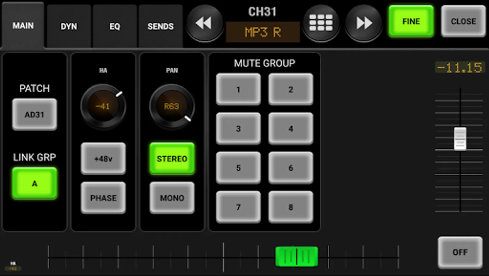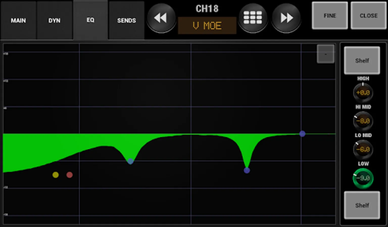 Control most Input, Mix, Matrix and Stereo parameters including: On, Fader, Patch, Link, HA, Phantom, Phase, Pan, Stereo/Mono, Mute Group, Dynamics, Parametric EQ and Send to Mix/Matrix.