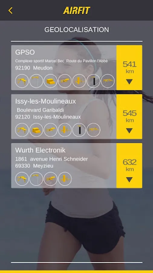 Airfit is the first sports coaching application associated with the nearby fitness area with free access.