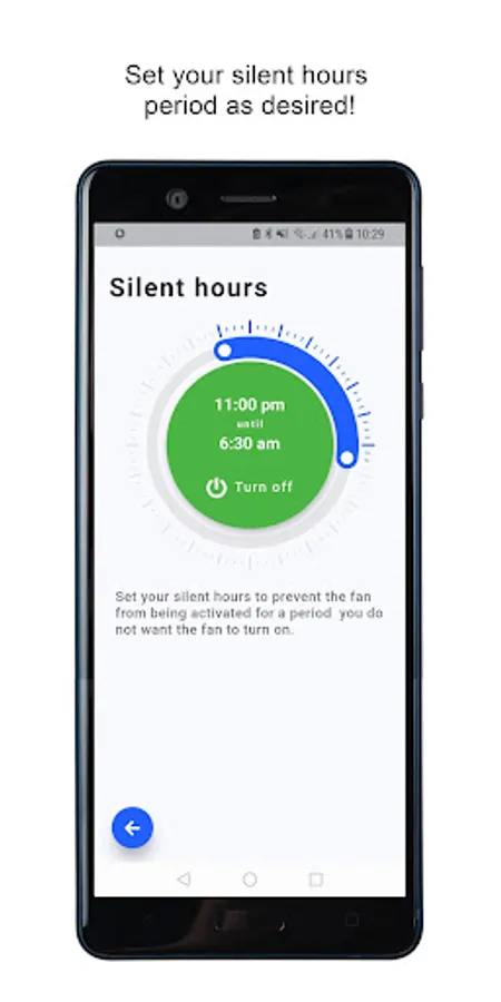 - Customisable silent hours and room refresh features preventing the fan from operating at night and keep the room health optimum.