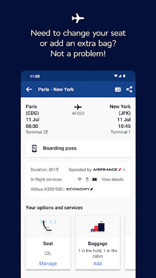 From booking a flight, checking in, and receiving real-time flight updates to managing your Flying Blue account, the Air France app is your must-have travel tool.