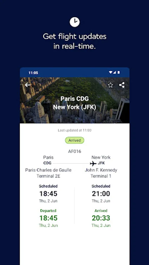 Turn on notifications and get real-time flight updates and exclusive content about your destination. You can also share your flight status with your loved ones to stay in touch with those on the ground.