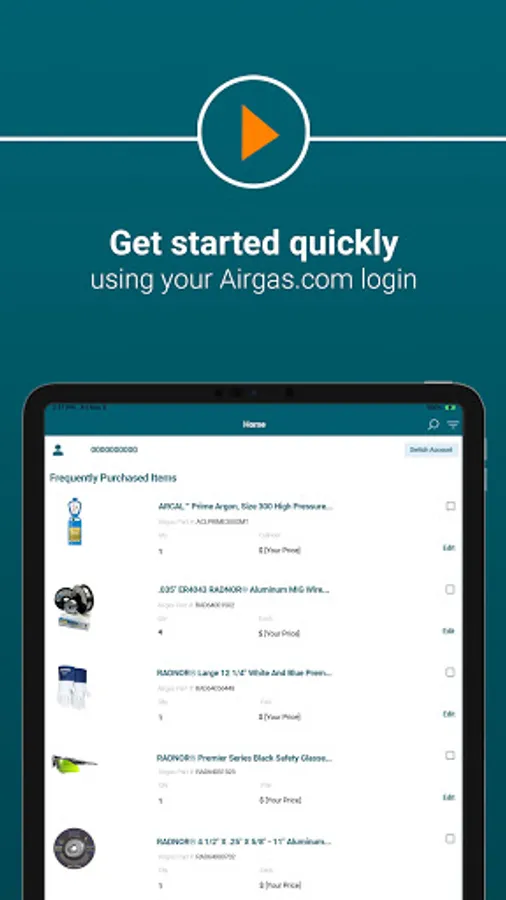If you’re an Airgas customer who needs to reorder your gases, welding and safety products, this is the time-saving app you’ve been waiting for. It’s the fastest way to reorder from Airgas. (Note: this Airgas Reorder App should not be used for orders required to be placed through your eProcurement platform or the Airgas SupplySync punchout site.)