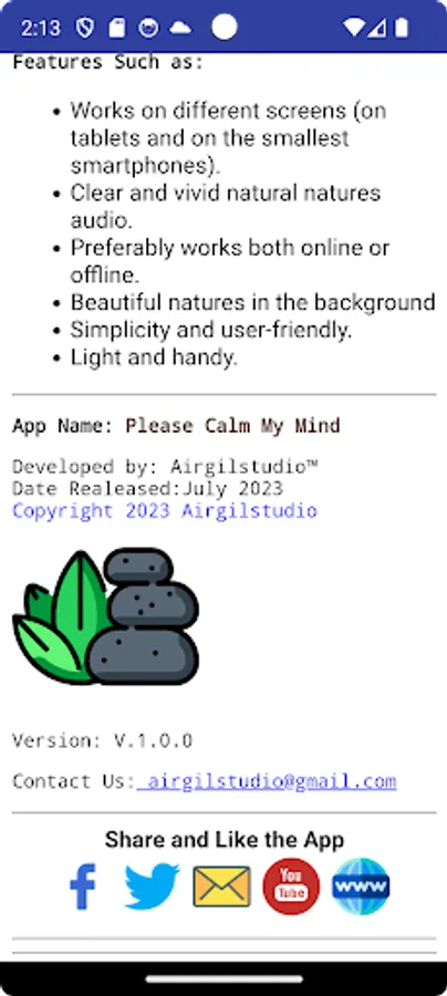An app that makes you totally serene, peaceful, and relaxed, listening to the sounds of nature in your convenience at anytime, anywhere.