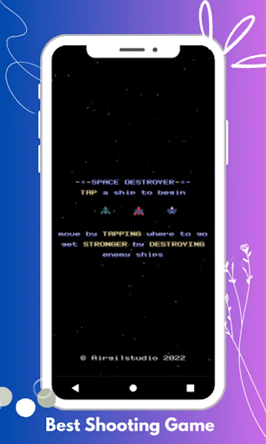 Space Destroyer a classic scrolling shoot 'em up game. Take control with your spaceship by tapping on the screen and dodge the enemy bulltes.