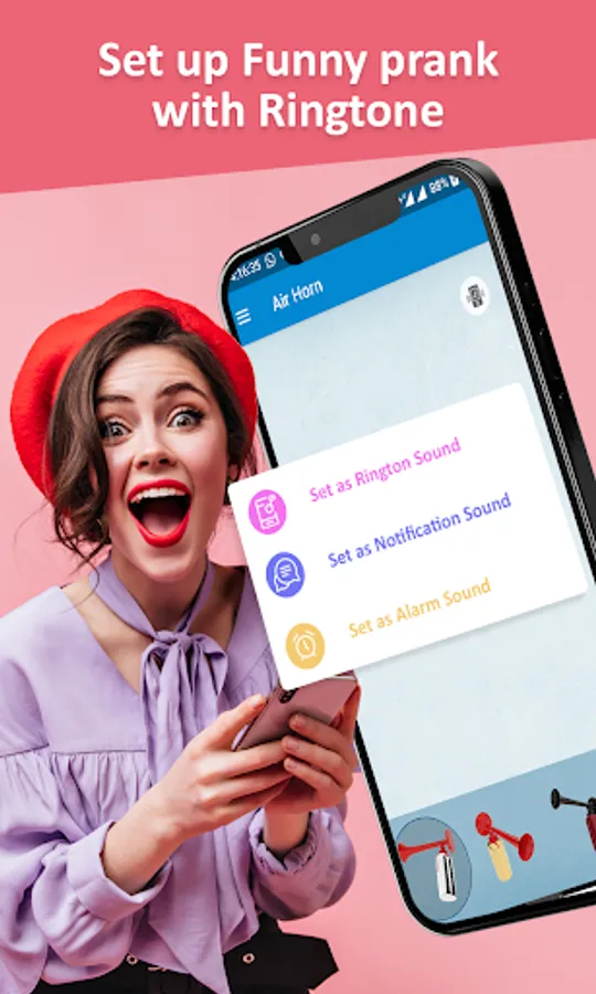 For an amusing April Fool's Day, you should have this Siren Prank app with airhorn sound effects and a ham horn. This Loudest Air Horn - Siren Prank application offers a variety of convincing airhorn sound effects that will fool everyone, including loud horn, truck, car, goal horn hub, and DJ horn. These deafening horn sound effects draw attention and foster a lively, enjoyable atmosphere.