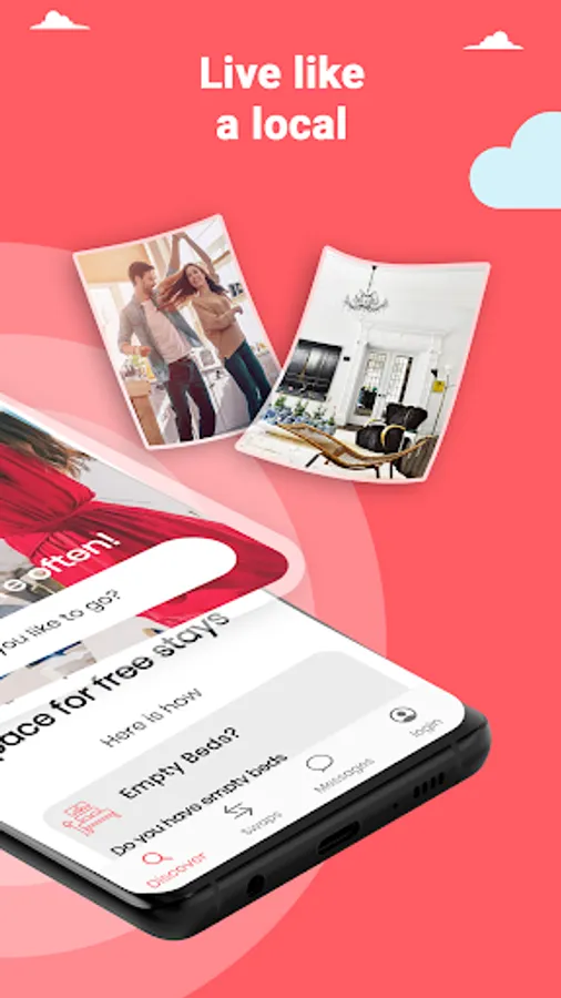 **Install our accommodation swap app on your device, sign up and explore thousands of places in hundreds of countries with a few simple clicks!