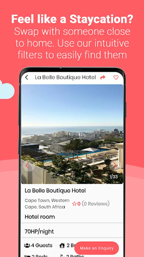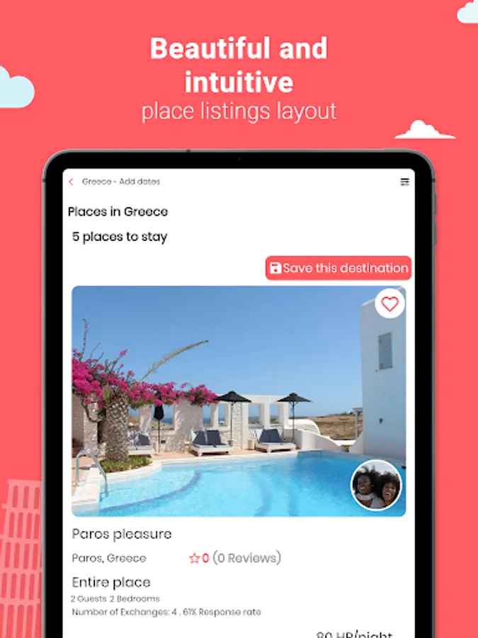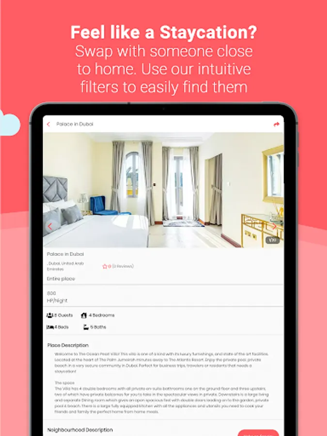 **Choose hotel rooms, vacation rentals, bed and breakfasts, guesthouses, cottages or any dream place anywhere in the world using our accommodation exchange app.