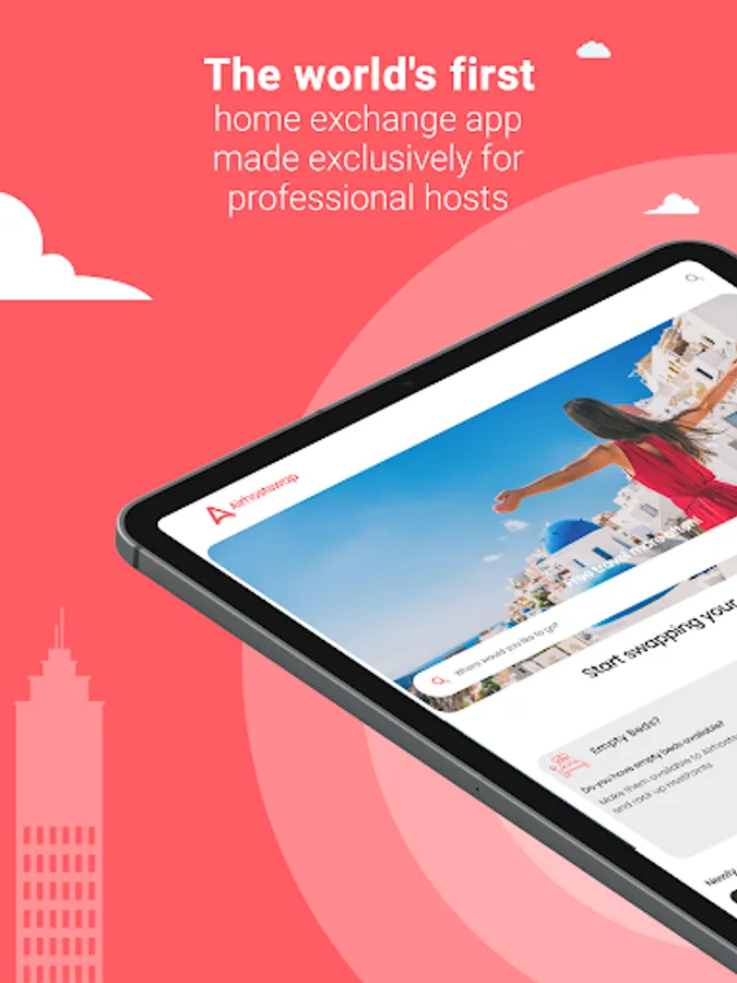 Unforgettable travel starts with Airhostswap. Find amazing properties to swap with - nearby or in exotic places far away or somewhere in-between. Whether you own a home, a hotel, a guesthouse or something in-between, you can use our swap app to exchange your place for free stays anywhere you choose. You don’t have to search for vacation rentals or rooms for rent apps anymore because with our swapping app, you can now swap your accommodation spaces with other professional hosts.