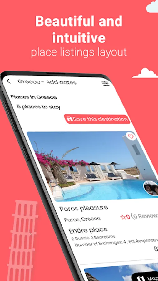 👍 Beautiful map searches in this home swapping app allow users to find their dream places instantly.