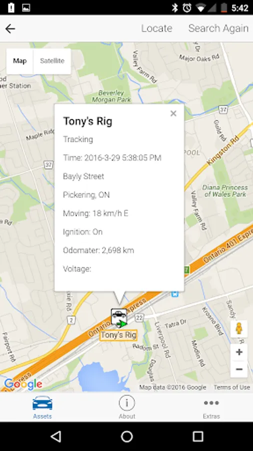 AirIQ Fleet™ allows users to view all assets in their account; or to perform a real time location of one or more of their assets. For each individual asset, the app will display the asset on a map and provide the event type, date, time, location, odometer, voltage and whether or not the ignition is on or off.