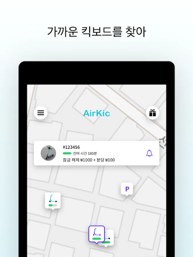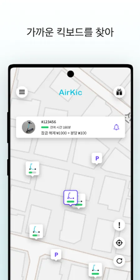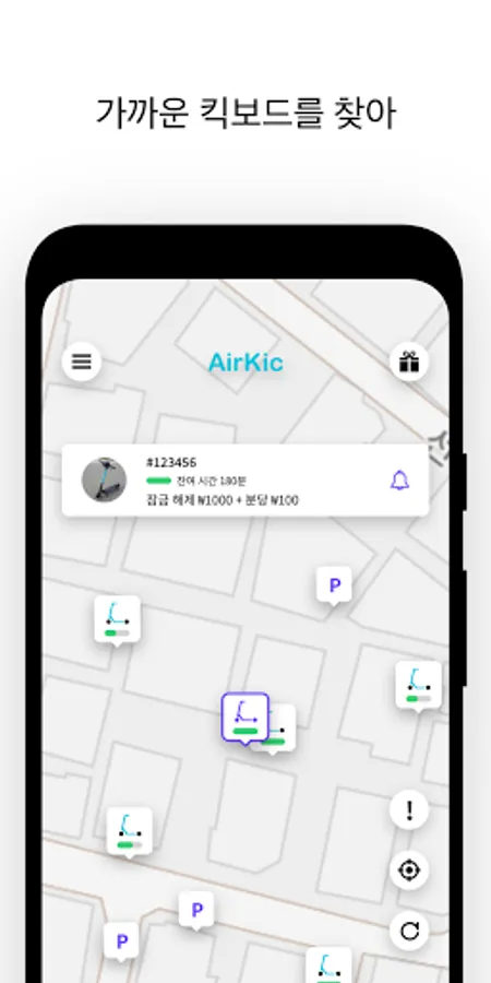 2. 지도에서 킥보드 위치를 확인하고