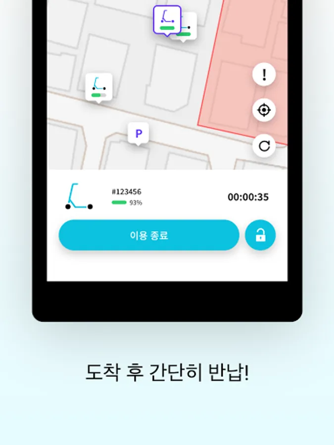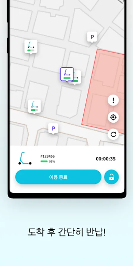 4. 안전하고 신나게 주행 후, 통행에 방해되지 않는 곳에 주차해주세요.