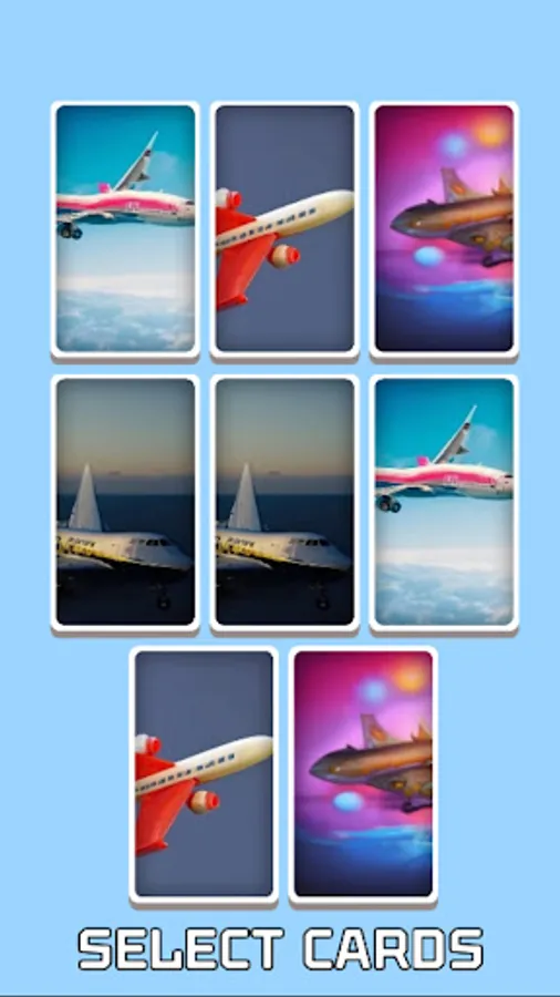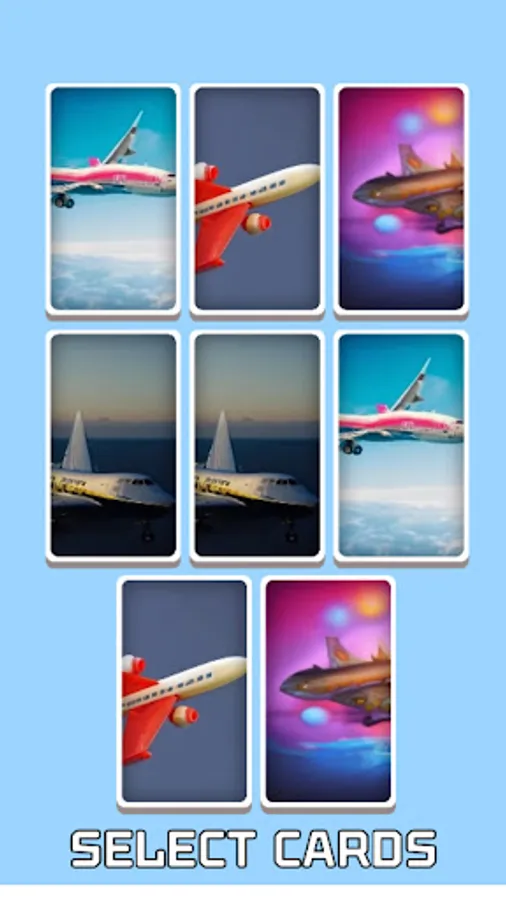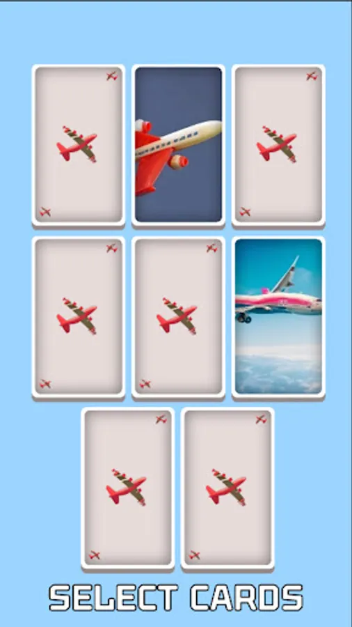 Good Air Cards is a fun and challenging memory game where you have to match identical airplane-themed cards. You will be presented with 8 cards and your goal is to find the pairs for each card. You have a total of 5 attempts to complete the game. If you manage to successfully match all the cards within the given attempts, you win! However, if you exhaust all 5 attempts without completing the game, you lose. Are you up for the challenge? Play Good Air Cards now and test your memory skills!