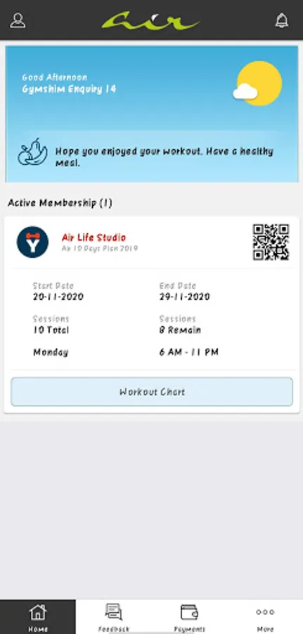 The app is a great way to schedule group activities and personal training sessions. Now don't miss your favorite group classes and stay updated. Airlife Member app also helps you keep a track of your daily attendance. The app makes this activity smooth as silk. You can easily track your record, even the irregular ones and know in advance the expiry date of any member and send renewal messages accordingly.