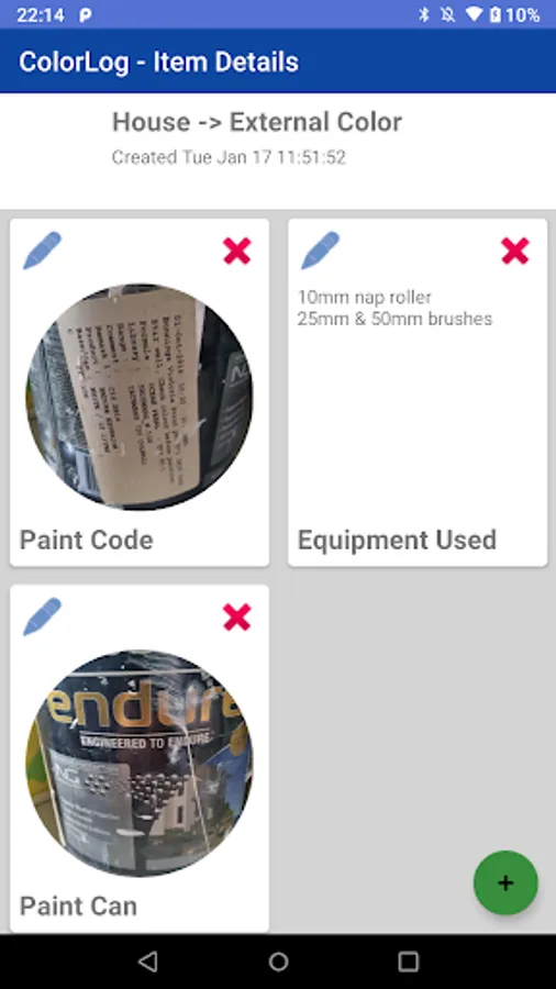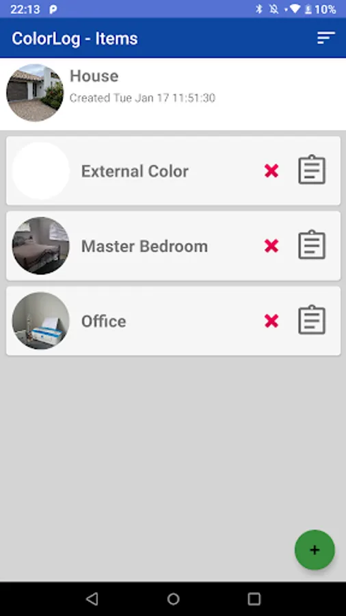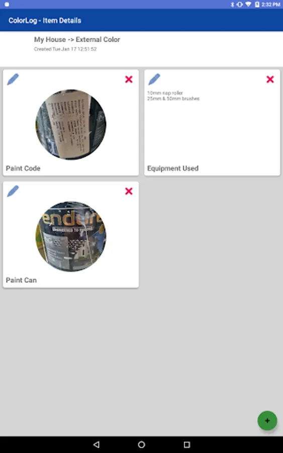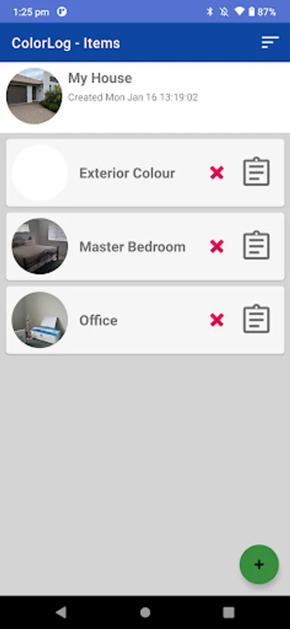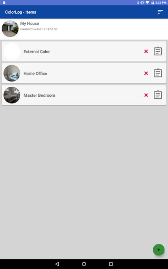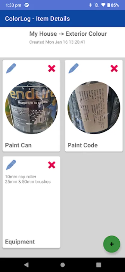 Create color groups (like your home), add items (like rooms) & then add details for each item (like wall colour, ceiling color, etc). Add photos & notes with all the info you need to be able to reproduce each color. You can even make notes about the equipment you used.