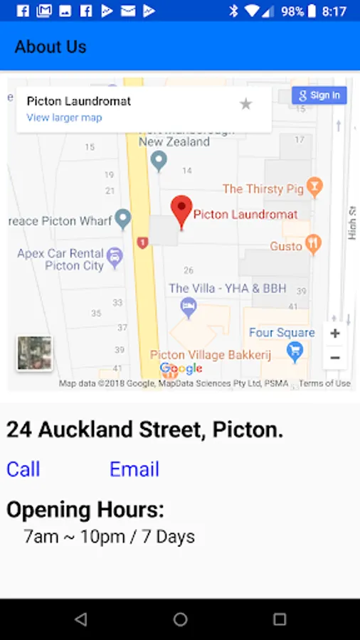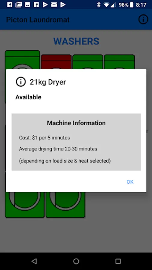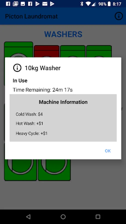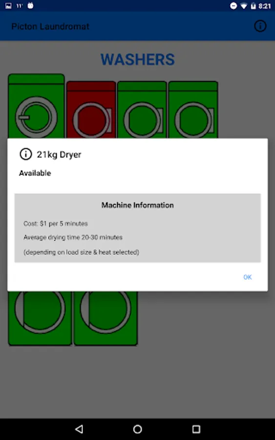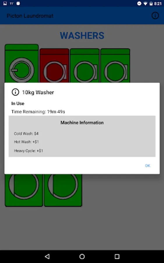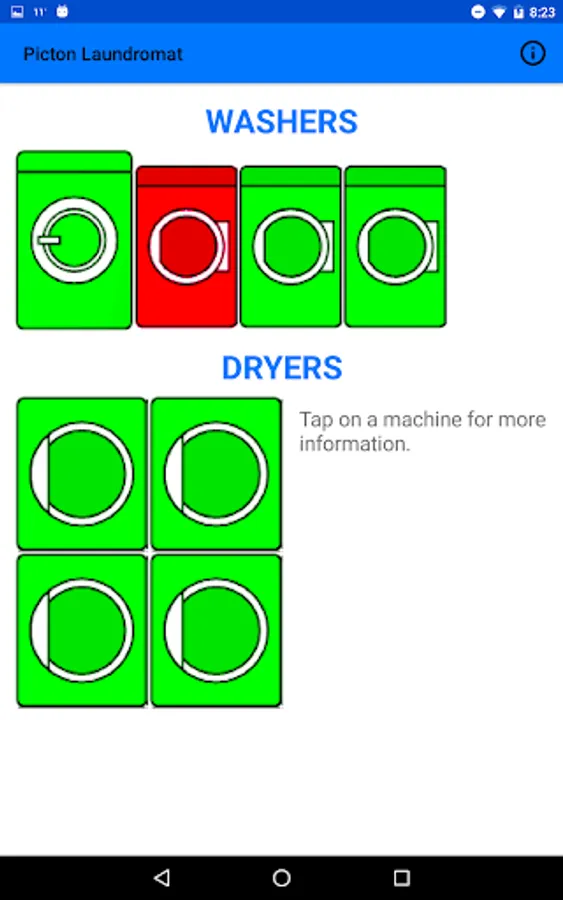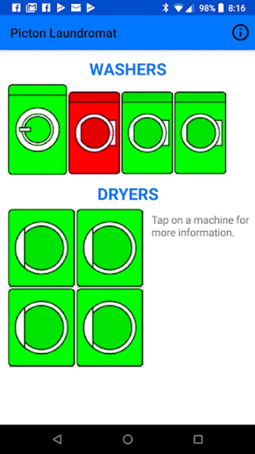 The Picton Laundromat app shows customers the availability of each machine as well as location & contact information for the laundromat.