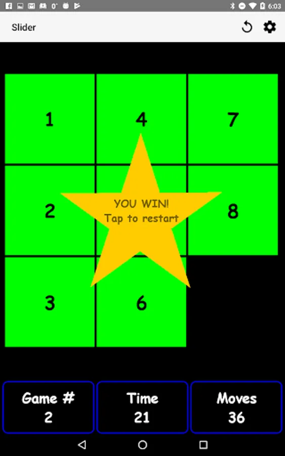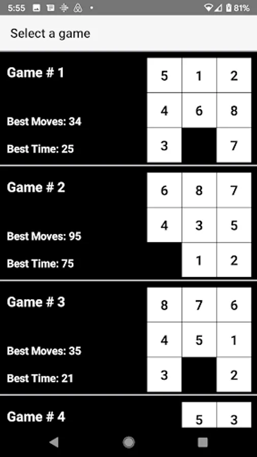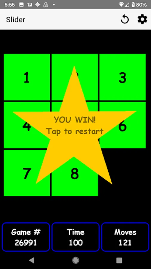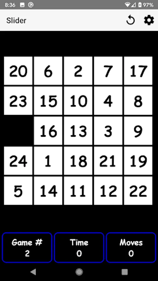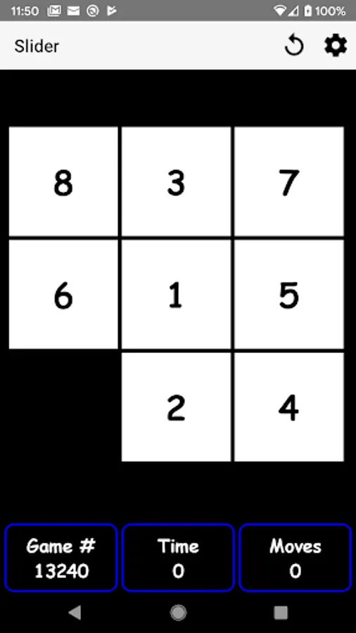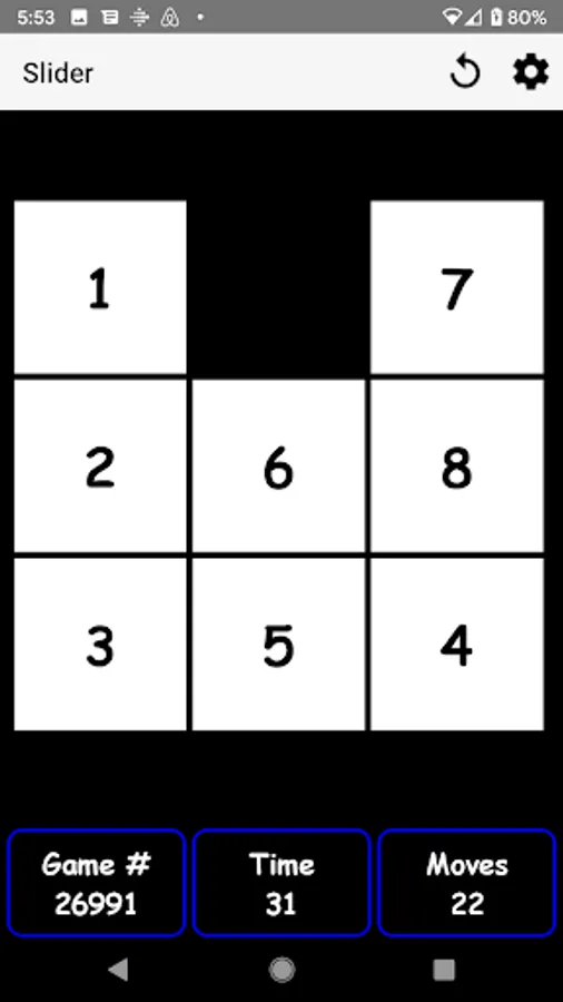 Slider is a simple but challenging slide puzzle in a 3x3, 4x4 or 5x5 grid. Games are randomly generated & each game you play is saved so you can go back later & try to beat your best time &/ or moves.