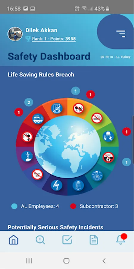 -Safety Dashboard: Application shows safety status such as road safety events, life saving rules breach or potential serious safety incidents