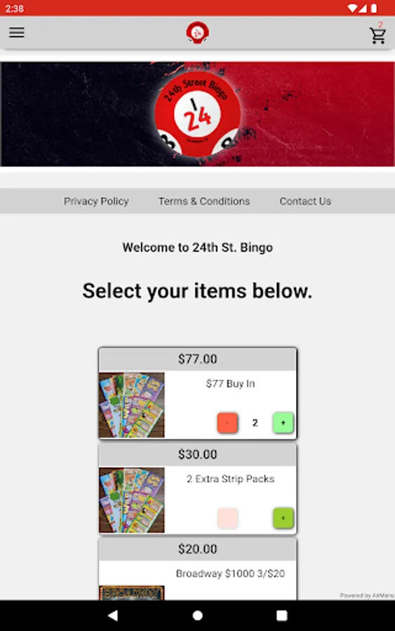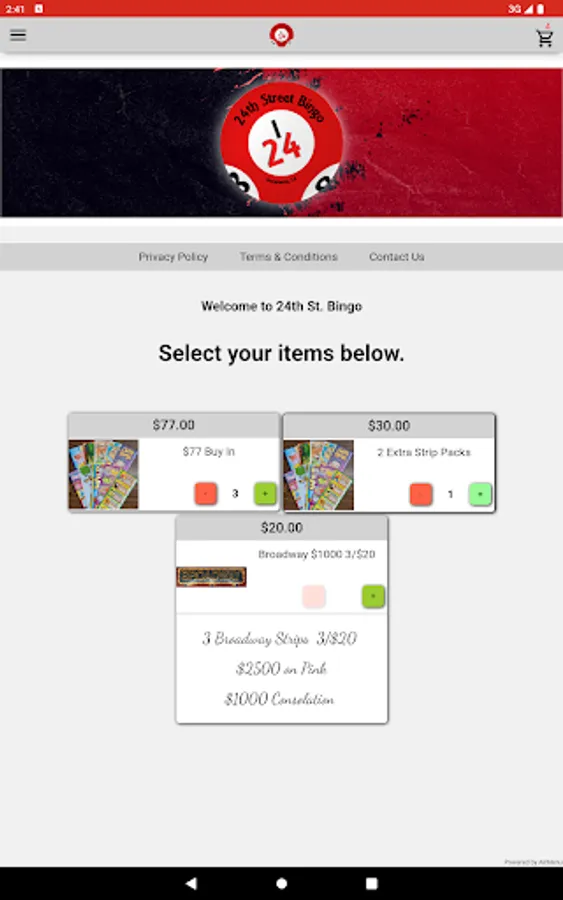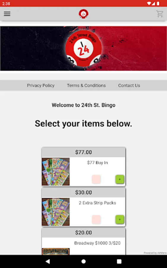Players can use the 24th Street Bingo app to purchase their games and reserve seats. Bingo games will be played exclusively on the hall, there’s no online playing/gambling associated with the use of this app.
