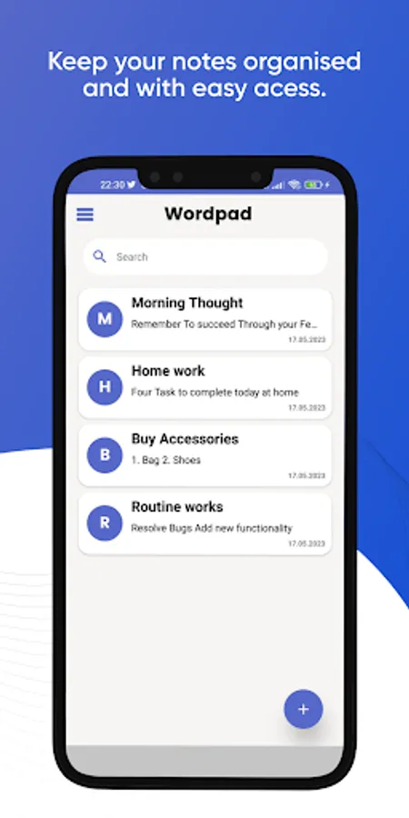 WordPad NotePad is a simple app to save your notes quickly. WordPad allows user to take his notes whenever he want instead of remembring or searching physical notepad and then take burden all along with him. Notepad is a digital writing pad.
