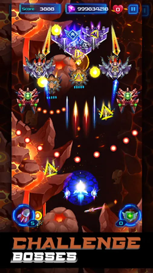 - Challenge Mode presents a test against various formidable enemies with unique movements. Use your skills to defeat these enemies and upgrade your fleet to confront the strongest foes in galaxy attack.