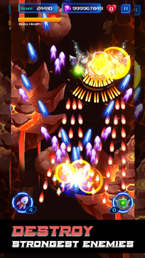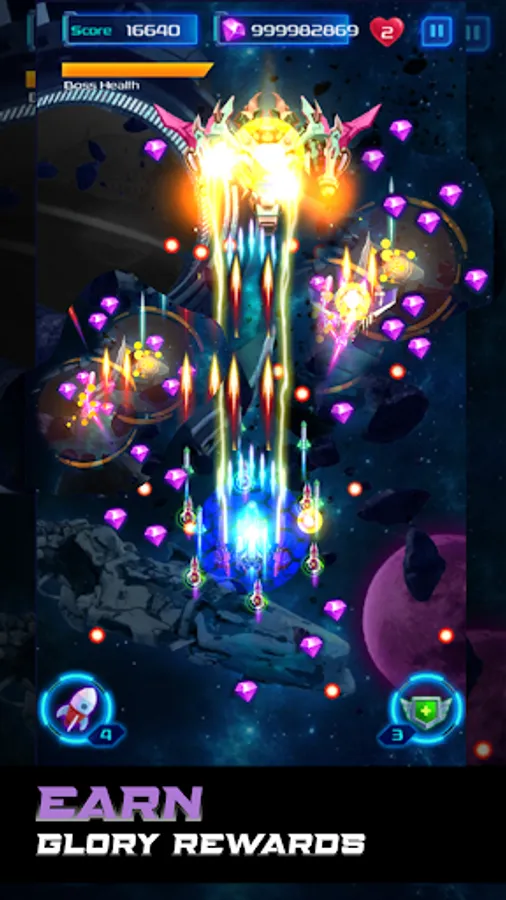- Engage in challenging story about galaxy attack, facing various strong enemies across different levels.