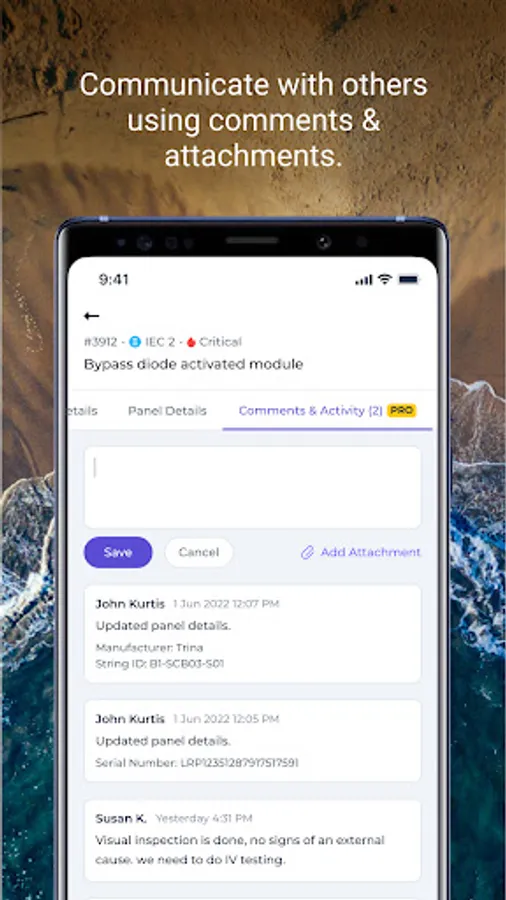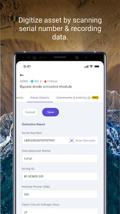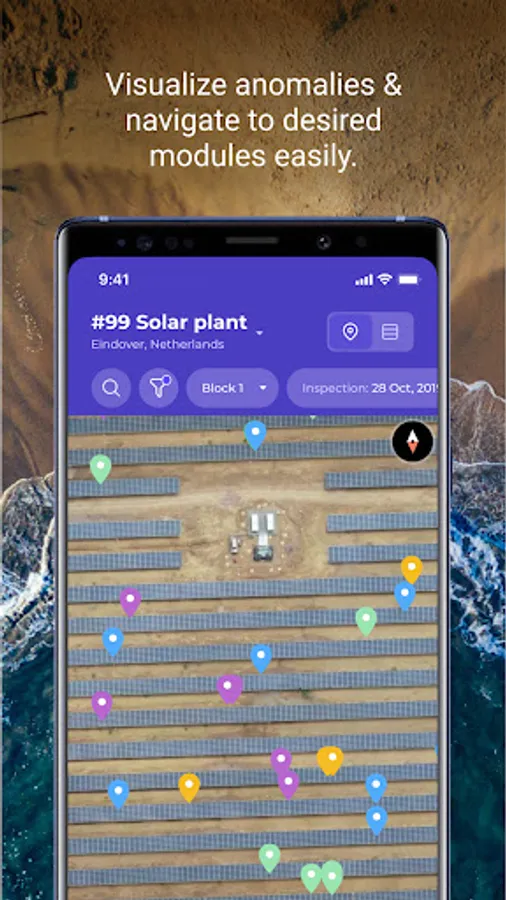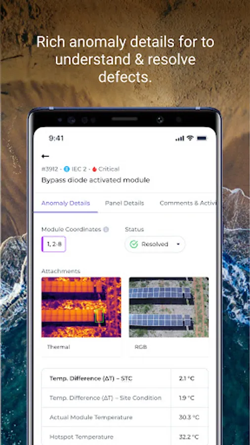 Mobile app for Solar Site Technicians to locate, verify and resolve thermal anomalies reported by Zeitview aerial thermography inspection. The app provides tools to support various O&M activities at the site- maintenance of assets, data collection for warranty claims, navigation on-site, collaboration among technicians, etc.