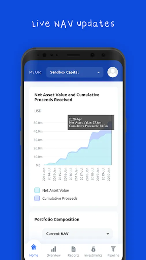 AIRR mobile automates your daily investment decision-making process. The platform integrates all processes that are crucial for an investment professional: portfolio management, pipeline monitoring, real-time portfolio valuation, consolidation of accounting data, automated investor onboarding and subsequent KYC procedure, as well as storage of all documentation accompanying the investment process. With AIRR you can easily integrate any external system you use and consolidate all the data on a single platform. Data isn’t buried within the system but can be easily exported / reused / transformed via standard reports or via the API for a customized version of your choice. AIRR generates and calculates the fund's past, current, and future expected NAV online. This global view displays important performance data for your investors, allows them to compare their investments and leads to greater liquidity for your portfolio.