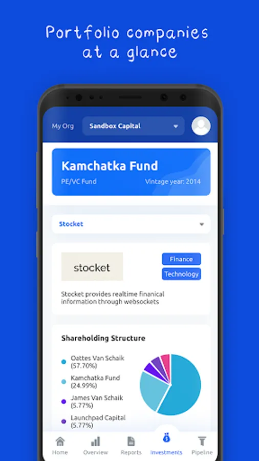 - Systematic data storage, portfolio structure, investment rounds, dividends - all in one platform