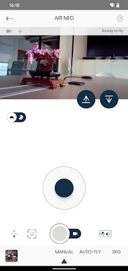 2. Manual Flight: Easily pilot your AirSelfie to ascend and descend using simple, familiar swipes of the joystick on the control panel in the app and tilting your smartphone for forward, backward and right or left directional movement.